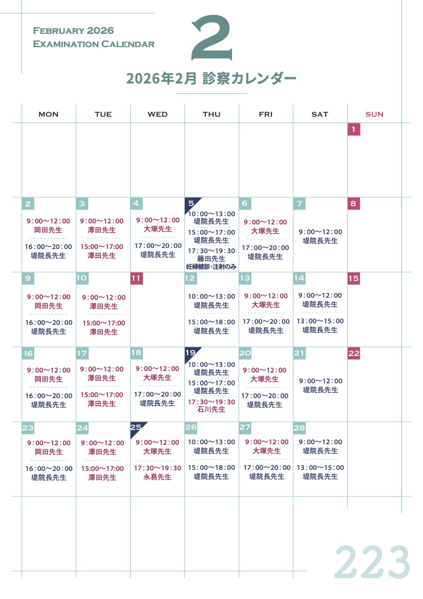 上記の澤田先生の日が、久野先生(女医)に変更になりました。