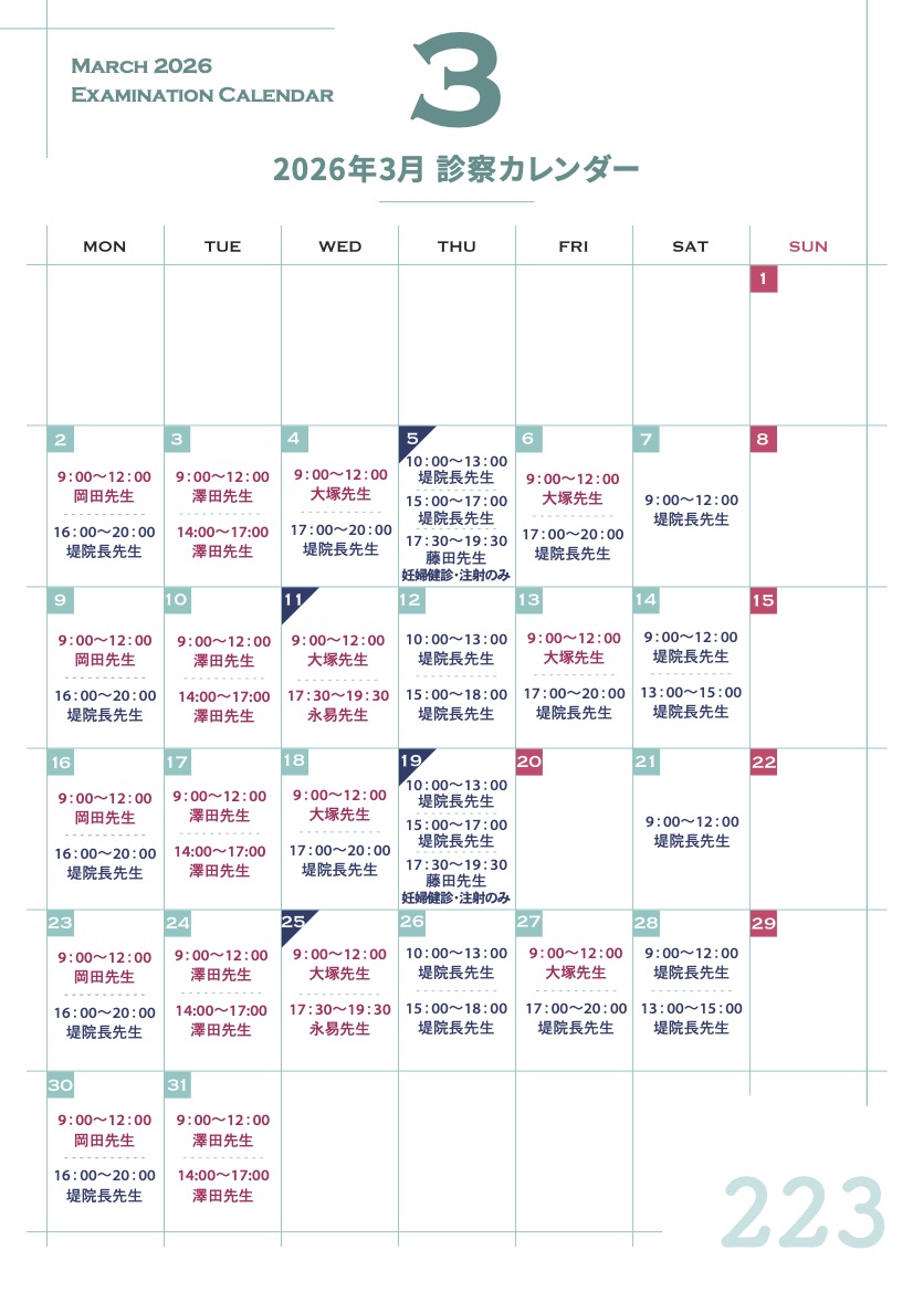 2026年2、3月の火曜日の診察時間が変更になりました。
