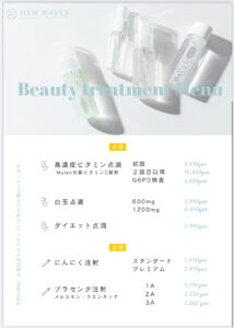 今回は、美容点滴と注射のご案内のご紹介を致します。