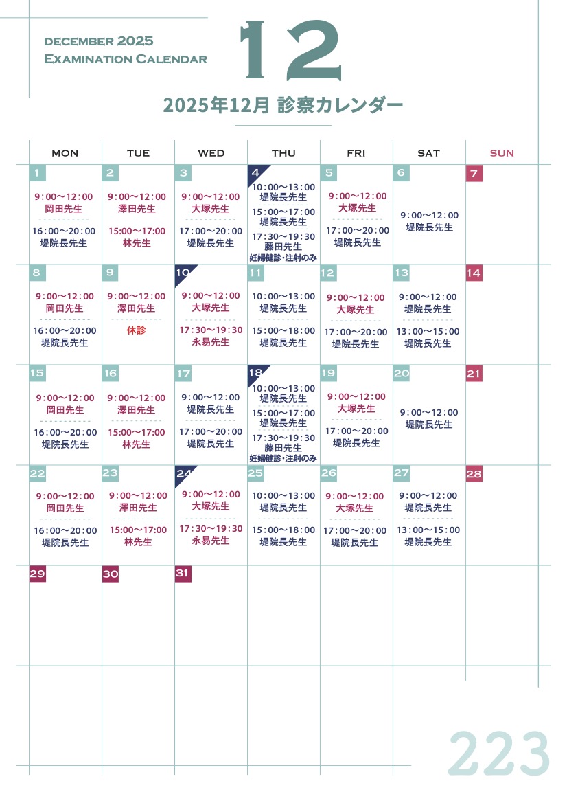 年末年始休診のお知らせ